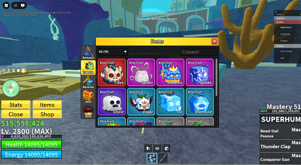 Acc level 2800 - GOD - T_Rex inventory + Nhiều beli