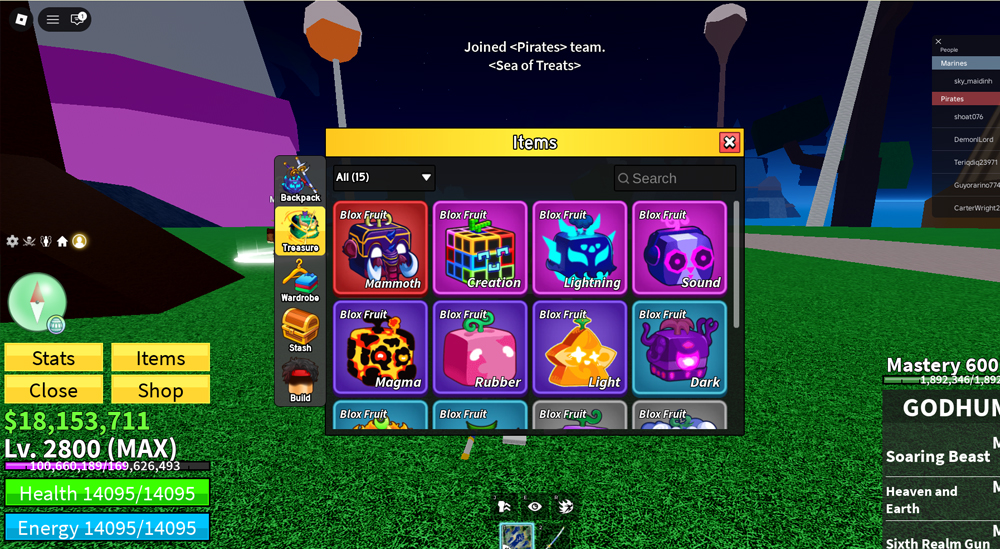 Acc Level MAX 2800 - GOD - có trái Lightning - mammoth